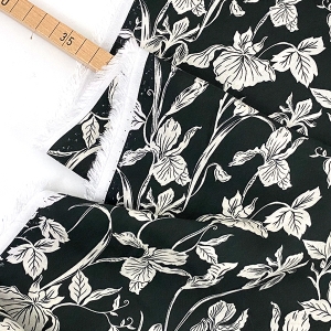 Reststück!!! 1,15m Woven Lyocell Flowers, Black and White
