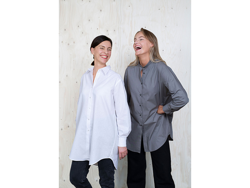 Perfektes Oversized Shirt in 2 Längen und mit 2 Kragenvarianten. Die Schultern sind überschnitten, hinten befindet sich eine schöne Kellerfalte. Mit Seitentaschen in der Naht.
