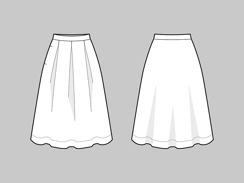 Assembly Line, Three Pleat Skirt, Gr. XL-XXXL, Papierschnittmuster