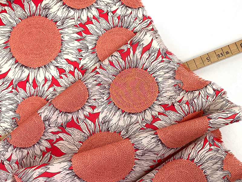 Der Stoff hat einen sehr schönen Fall und eignet sich daher hervorragend für Tücher. Dieses Stück hat ein Maß von 65 x 65 cm, also ein perfektes Maß für ein quadratisches oder 2 dreieckige Bandana Tücher.