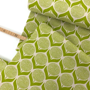 Der Stoff ist durch den Leinenanteil etwas fester (Canvas) und eignet sich hervorragend für Accessoires, Taschen, Kleidung (z. B. Röcke, Kleider), Homedeko, Kissen, etc..