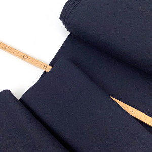 Eine unglaublich tolle Strickqualtität! Es handelt sich um einen Doppelstrick, d. h. das Material ist vollflächig doppelt gestrickt und besitzt damit einen eleganten Stand und eine perfekte Formstabiltät (leiert nicht aus). Das Strickbild ist edel und fein (es ist leider auf Fotos so gut wie nicht möglich zu zeigen, wie toll das Material wirklich ist!). Eine Qualität, wie man sie nur bei Designerleftovers finden kann.