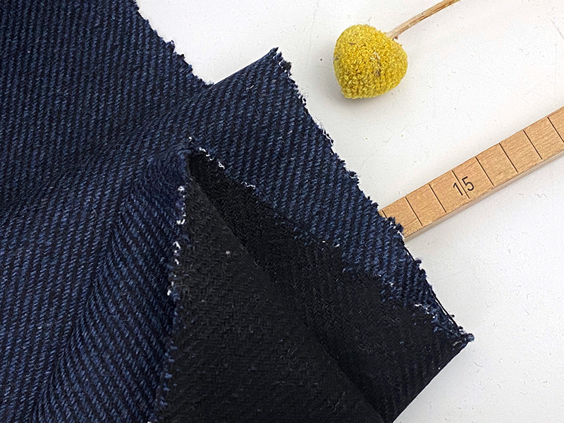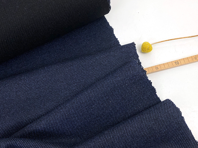 Hochwertiger Mantelwollstoff mit etwas Volumen, Stand und einer schön weichen Oberfläche. Der Stoff hat eine dezente Diagonalstruktur, hervorgerufen durch die zweifarbige Webung in Blau und Schwarz. Dennoch ist der Stoff klassisch, elegant und einfach großartig in der Qualität.