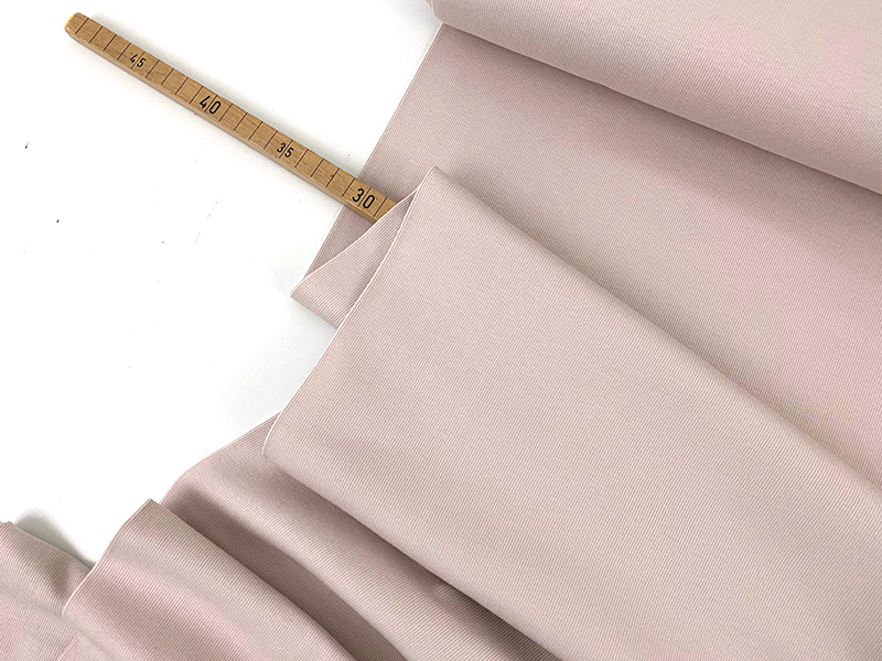 Hochwertiger und samtig weicher Baumwolljersey mit einer feinen Rippe in einem schönen Indigoblau. Es handelt sich um ein Designerleftover, also einem Überhang aus einer namhaften Modeproduktion. Das Material hat einen wunderschönen Griff, fühlt sich fast an wie Tencel und ist damit sehr angenehm auf der Haut. Die Oberfläche hat ein wertiges Finish. Der Farbton ist ein heller, leicht gedeckter Puderton.