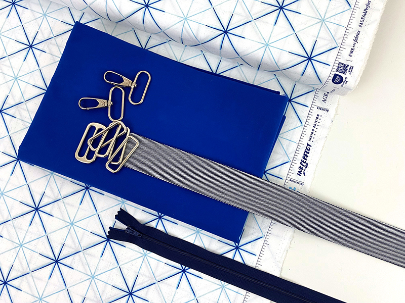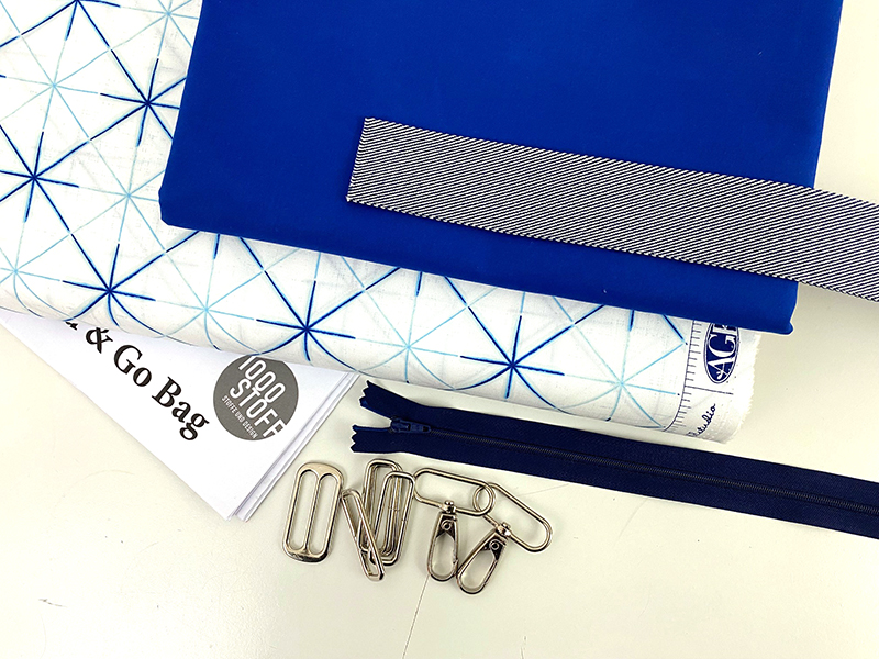 Fold and Go Bag Nähpaket, Organic Dry Oilskin Cobalt & Itajime Blocks, Ink Perfect, 1000stoff