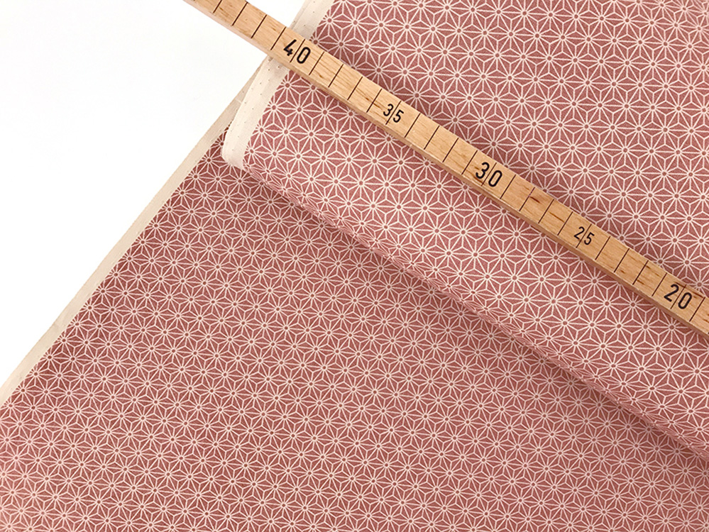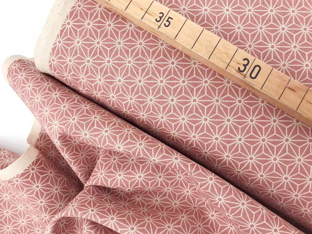 Das sternförmige Hanfmuster ist ein traditionelles japanisches Design. Schlicht und gleichzeitig lebendig. Super zum Kombinieren, aber auch als Einzelstoff sehr schön! Helles Rosa auf ungebleichter Baumwolle.