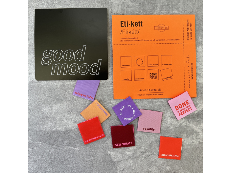 Edition 15 ist farblich intensiv und fröhlich in Orange- und Lilatönen mit grafisch unterschiedlichen Schriftzügen. Für gute Laune im Herbst! Zum Ein- und Annähen an Kleidung und Accessoires, ein ganz besonderes Detail und Hingucker!