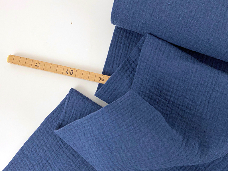 Weicher, doppellagiger Baumwollmusselin in einem schönen Jeansblau.