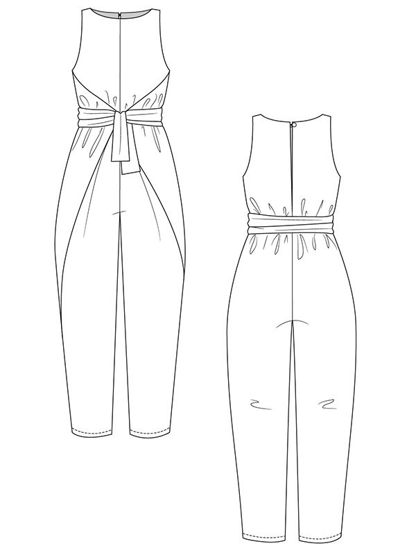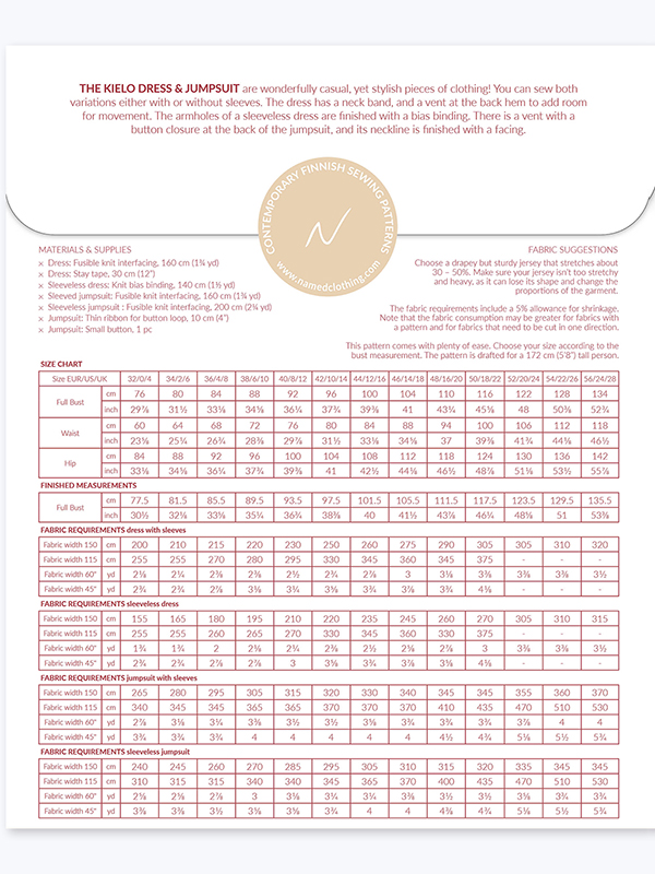Das Kielo-Kleid und der Jumpsuit sind wunderbar lässige, aber dennoch elegante Kleidungsstücke! Du kannst beide Varianten entweder mit oder ohne Ärmel nähen. Für ausreichend Bewegungsfreiheit wird das Kleid am hinteren Saum mit Schlitz vernäht. Der Jumpsuit hat einen Knopfverschluss auf der Rückseite.