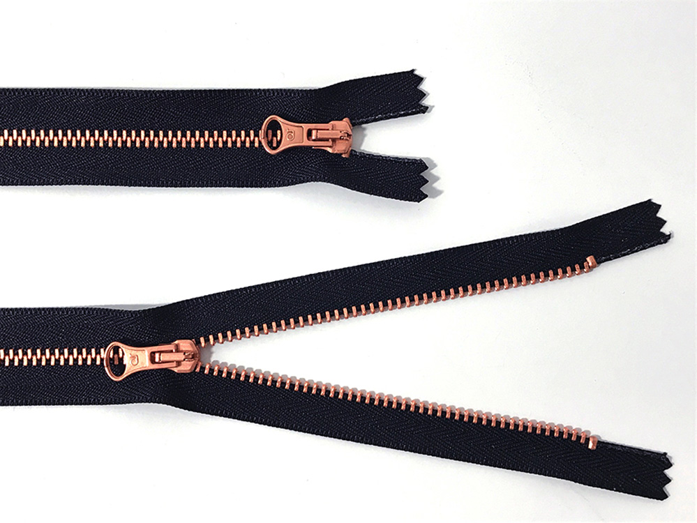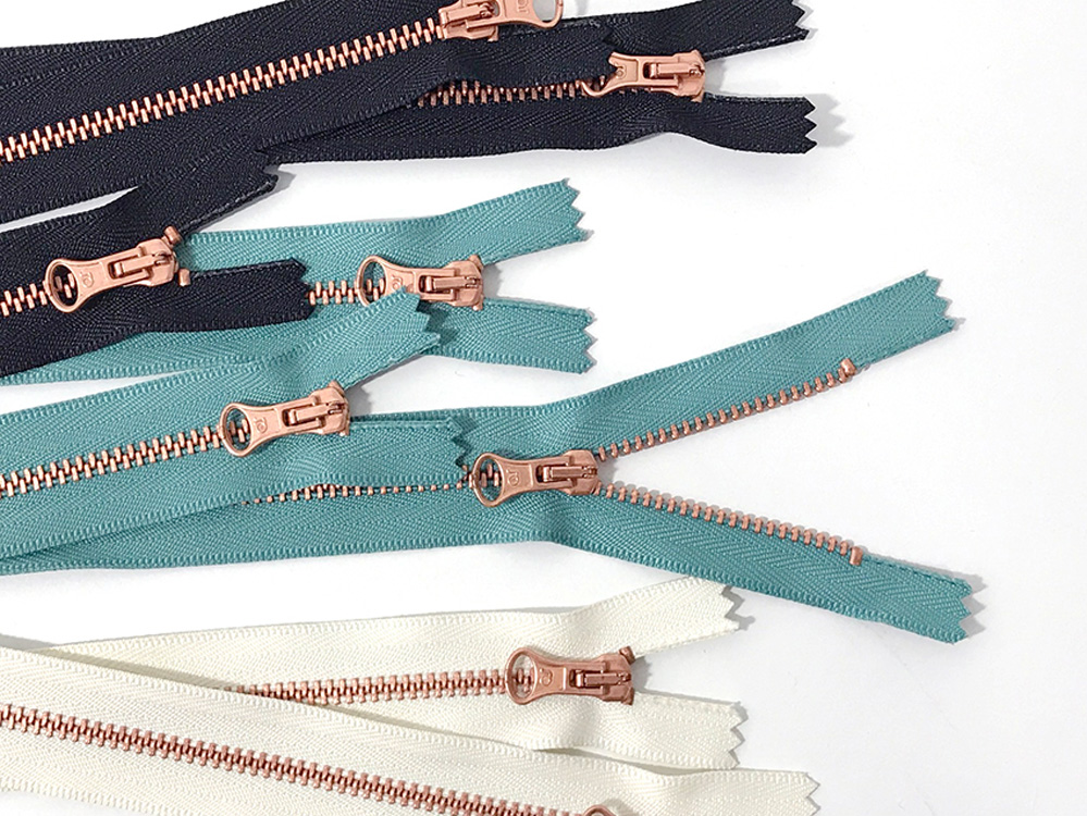Perfekt für Farbakzente an Kleidungsstücken oder Accessoires. Zähne und Schieber sind kupferfarben.