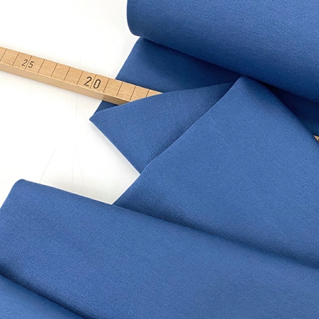 Dieser Viskosestrick ist ein Romanitstoff, ein sogenannter Double-Jersey, also ein doppelflächiger Feinstrick mit einerseits guter Dehnbarkeit und andererseits einer angenehmen Festigkeit. Er besitzt eine gute Rücksprungkraft und bleibt perfekt in Form. Er fällt edel, gleichzeitig mit ein bisschen Stand und zeichnet nicht ab. Durch die doppelflächige Strickstruktur hat er zwei rechte Seiten, kann also beidseitig eingesetzt werden.