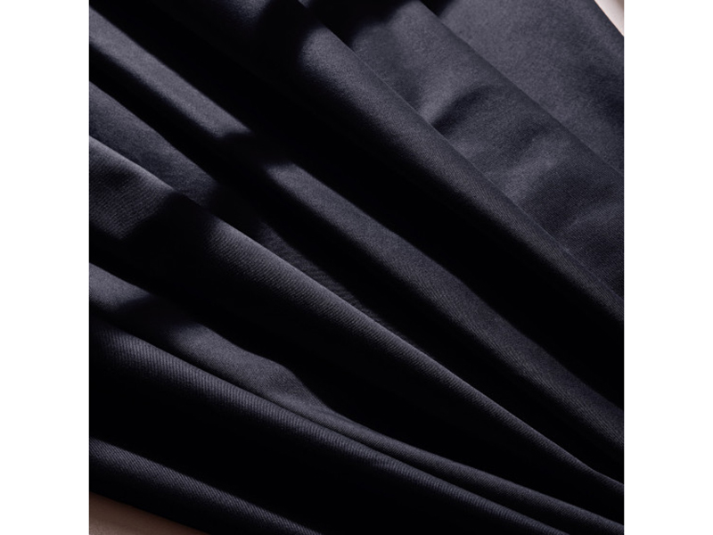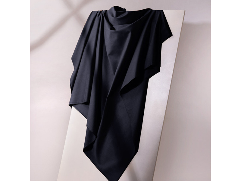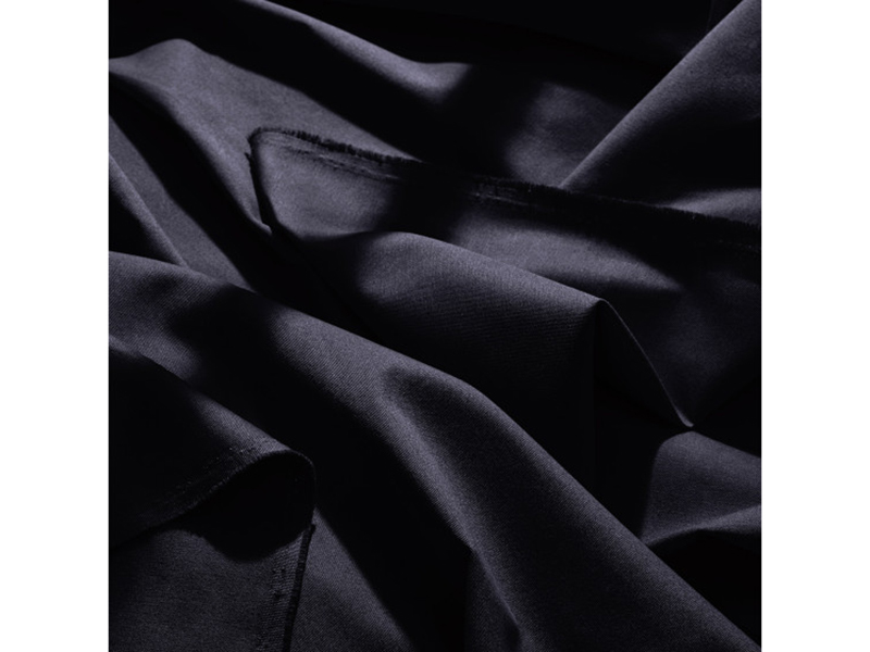 Ein wunderschöner, mittelschwerer Twill in tiefem Blau-Schwarz mit sehr schönem Fall und gleichzeitig auch etwas Stand. Das Material hat einen sehr schönen, fast samtigen Griff.