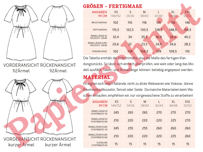 Papierschnittmuster Gr. XS (146/152) bis XXL (50/52)