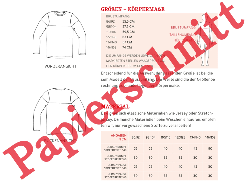 © Alle Rechte an diesem Schnitt liegen bei STUDIO SCHNITTREIF (Anja Müssig und Brid Fichtner). Das Schnittmuster darf nur für den privaten gebrauch verwendet werden. Es ist nicht erlaubt, das Schnittmuster für die Produktion von Verkaufsartikeln zu verwenden. Kopieren und Weitergabe der Anleitung sind nicht gestattet. Für Fehler in der Anleitung wird keine Haftung übernommen.