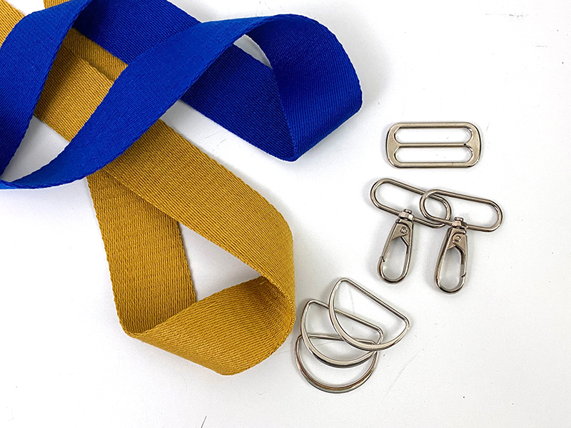 Für die D-Ringe werden seitliche Gurtbandschlaufen angenäht. Als besonderes Feature enthält eine der Schlaufen einen zusätzlichen D-Ring, an dem Du z. B. einen Schlüsselkarabiner befestigen kannst.