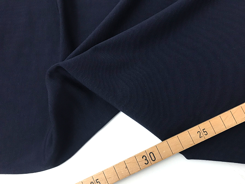 Einmal anfassen und nicht mehr loslassen. Der Stoff fällt wahnsinnig weich und samtig und hat eine schöne Dehnbarkeit. Die Oberfläche ist matt und edel. Die Farbe ist ein schönes Dunkelblau.